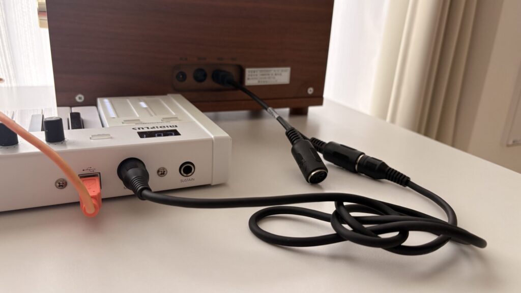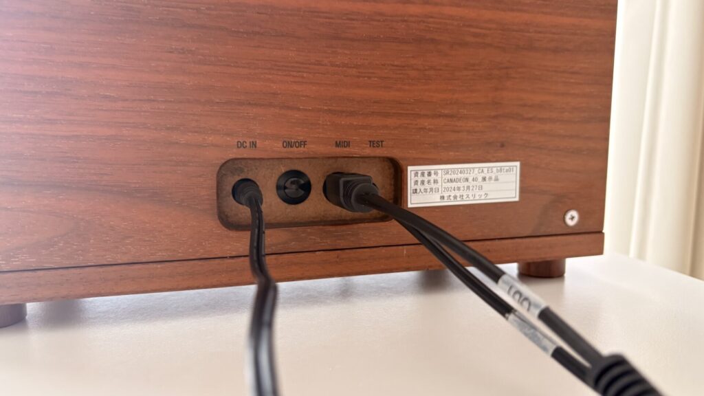 セットアップは簡単で、CANADEONの背面にあるMIDIポートにMIDIケーブルを接続し、そこにキーボードをつなげばOK!
