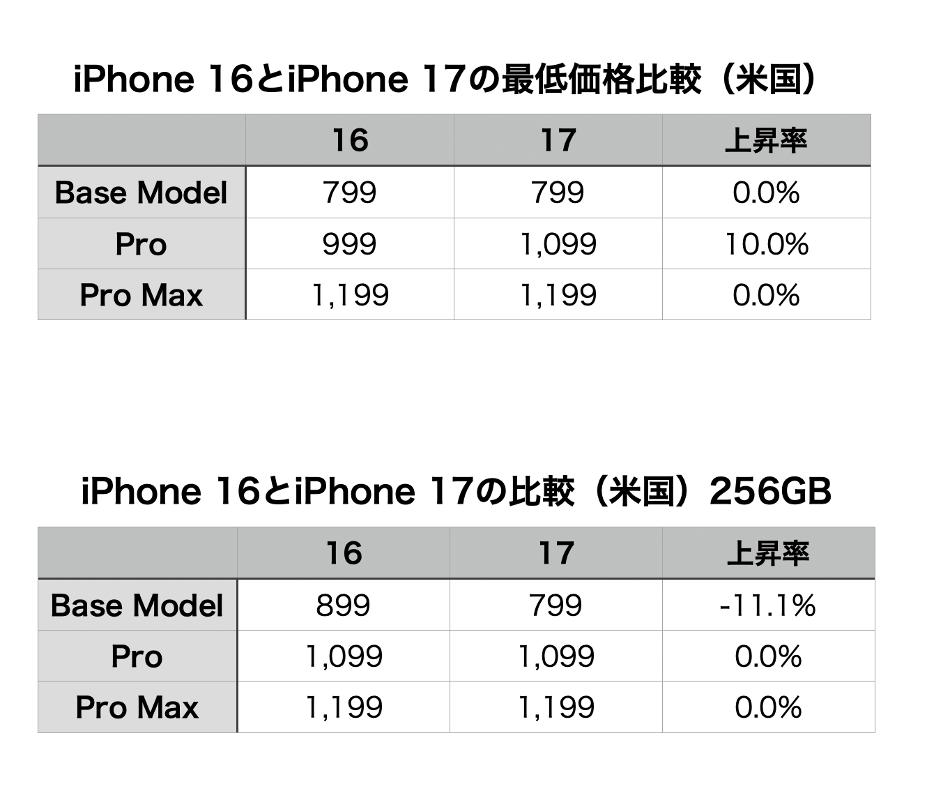 - iPhone 17は全モデルが価格据え置き、あるいは値引き。トランプ関税に対応するAppleの戦略